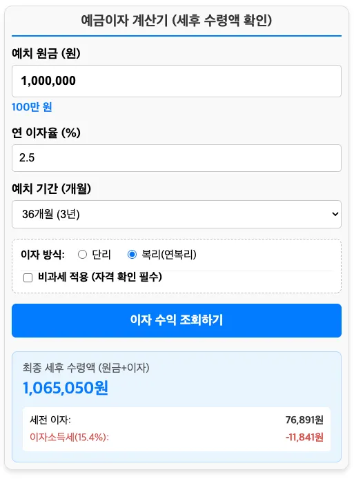 목돈을 예치할 때 가장 먼저 확인해야 할 점은 이자가 붙는 방식입니다. 예금 금리 계산기를 활용하면 내가 받을 세후 수령액을 미리 파악할 수 있어 효율적인 자금 계획 수립이 가능합니다.